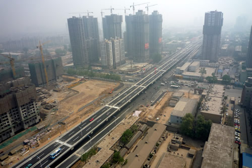 由我公司承建的一標(biāo)段西起紅軍大街,東止于北新街東220米,總長(zhǎng)1621.267m,由高架橋梁、道路、排水管道、道路照明等工程項(xiàng)目組成,是全線三個(gè)標(biāo)段中工程量最大的標(biāo)段。2009年4月30日主橋主路正式通車,比預(yù)定工期提前了10個(gè)月。